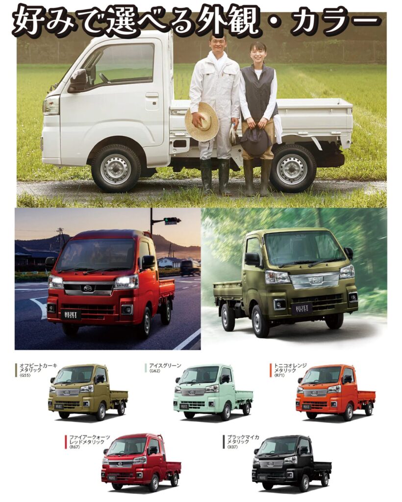 ハイゼットは、シンプルなホワイトから、個性的なメタリックカラーまで豊富なラインナップが揃っています。