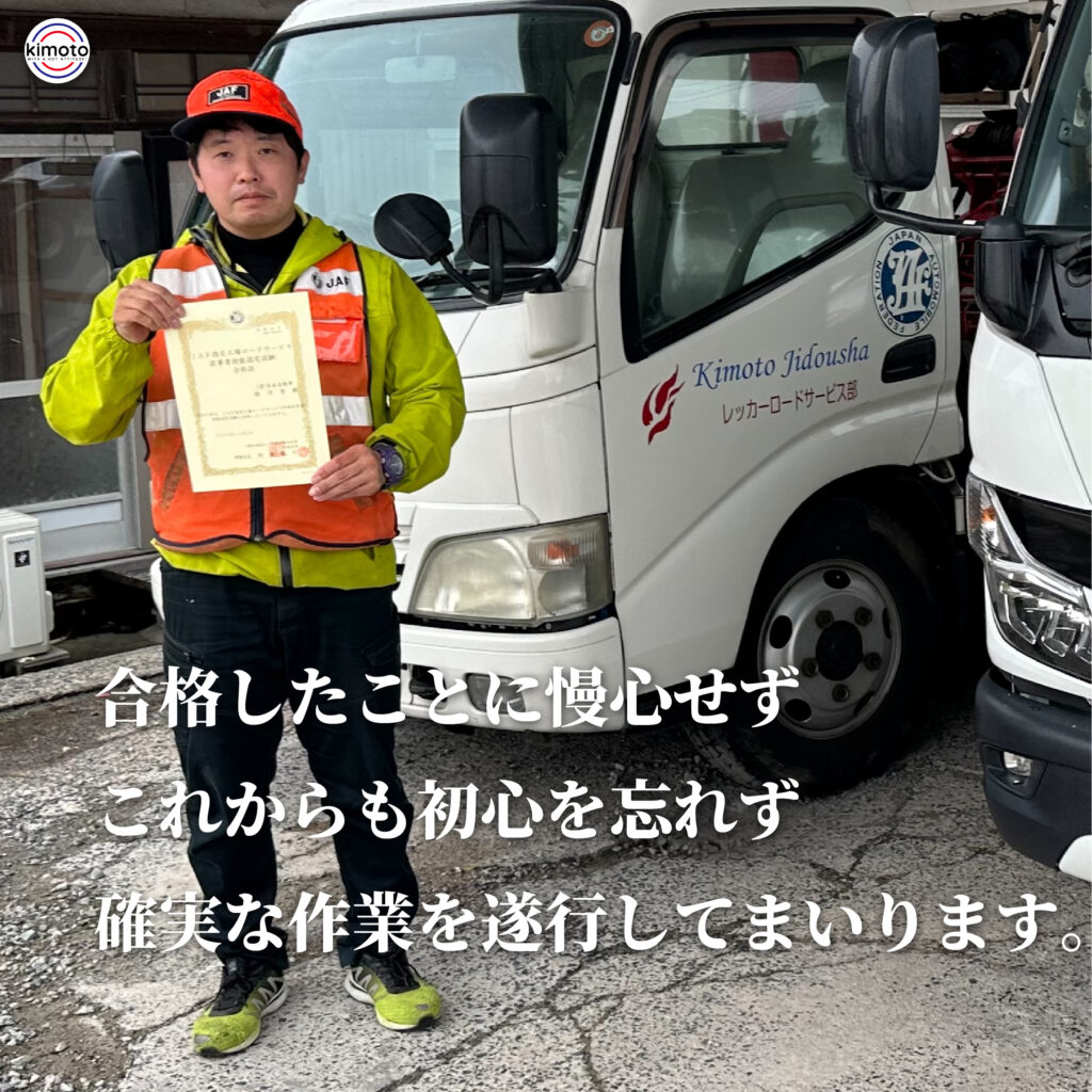 ロードサービス従事者の 安全性・技術力・判断力 を確保するため、