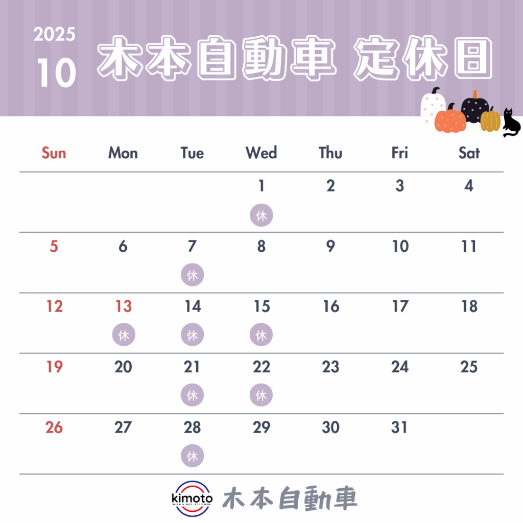 2025年10月 今月の定休日です。各種サービスは下記リンクボタンよりご予約可能…